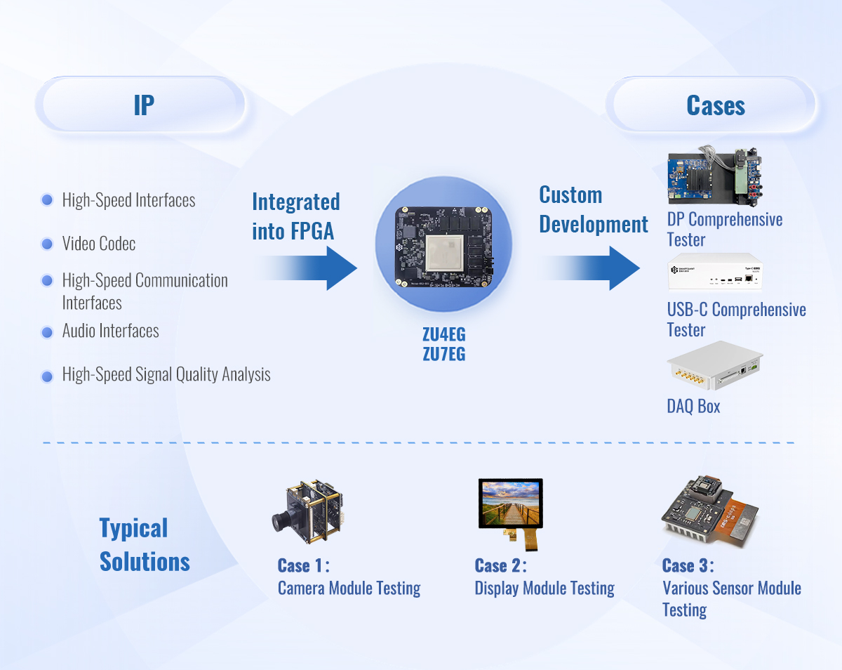 ◆ We provide full-process support from core IP licensing and high-performance FPGA module development to professional testing solutions. Integrating MIPI, DP, and HDMI interfaces with high-speed transmission protocols, our customized ODM services precisely match the technical requirements of clients across industries, enabling rapid functional deployment and performance optimization.